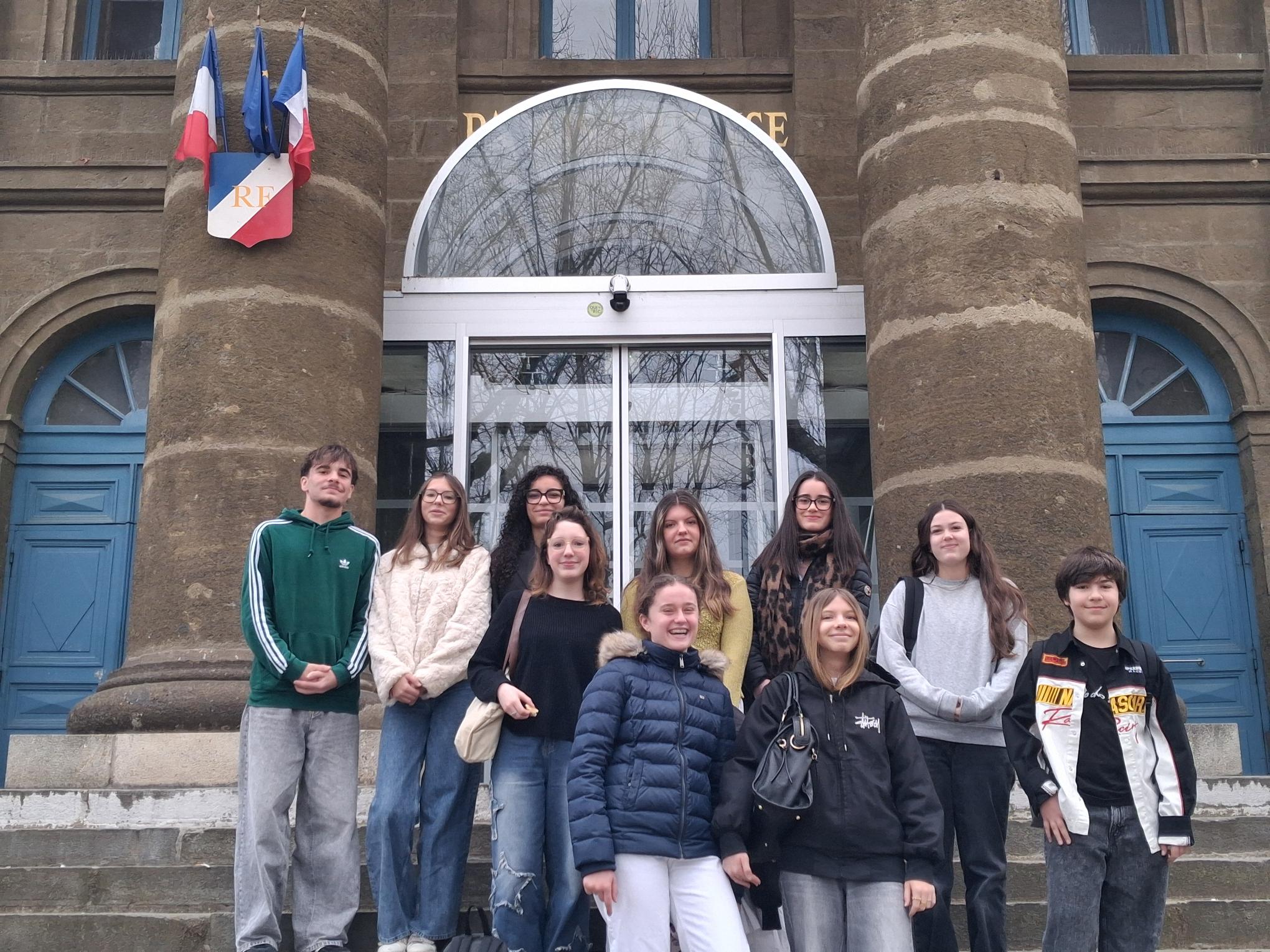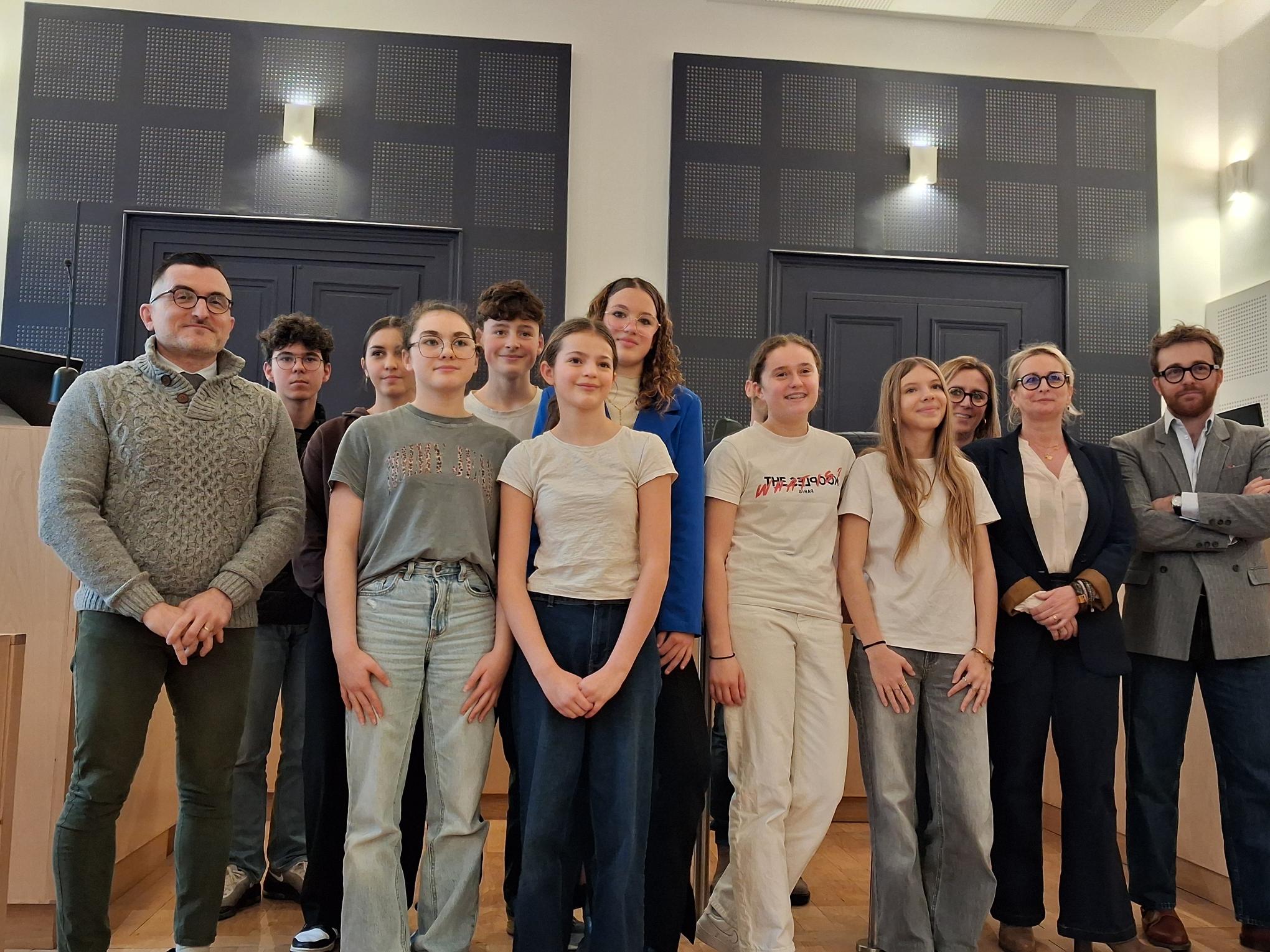 Elles étaient accompagnées de quelques camarades, de M. Nadau asssistant d'éducation référent des élèves de 3e, Delphine Verrier professeure principale et Jean-Luc Laschamp leur professeur de français.
