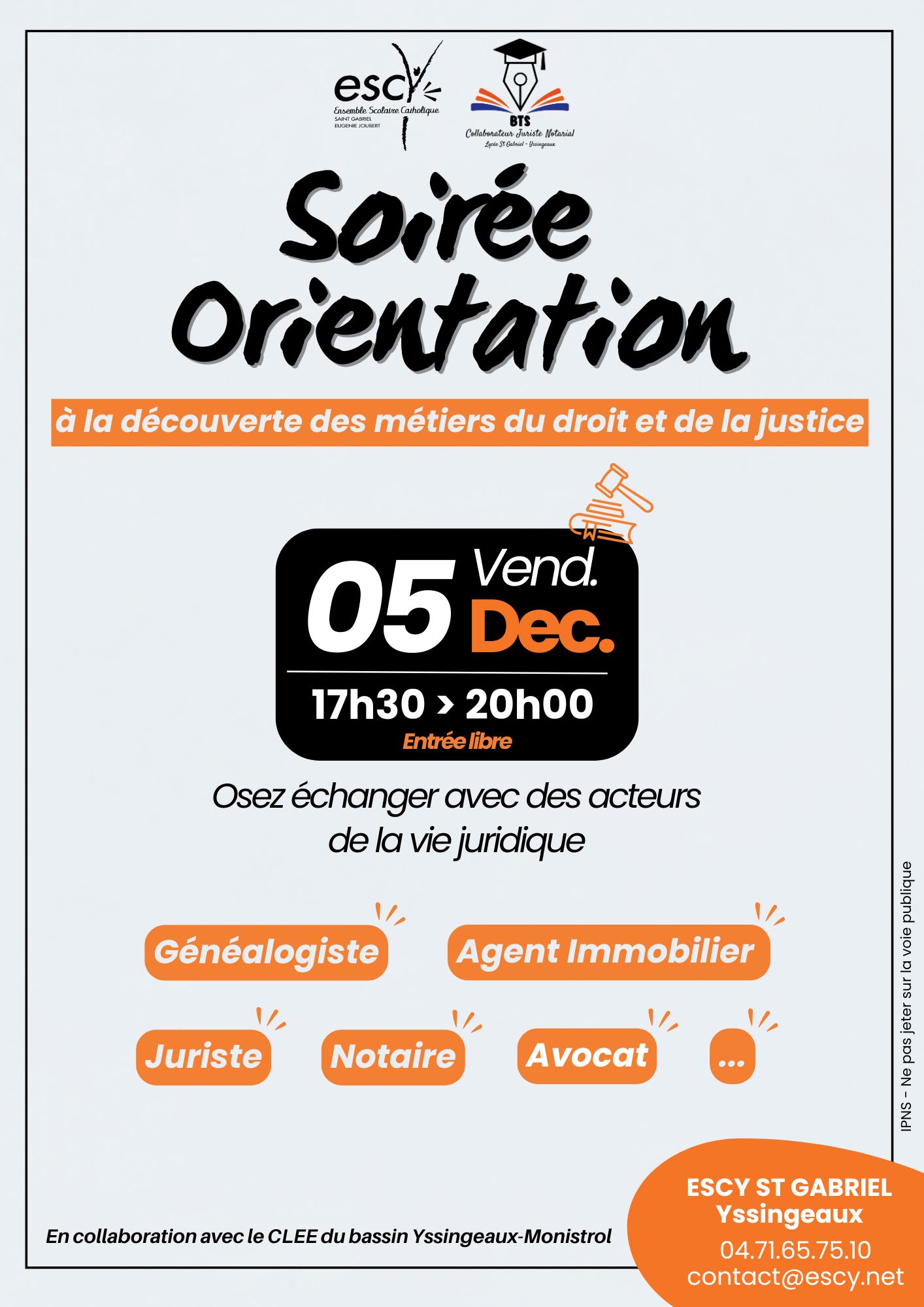 L'ESCY organise une soirée orientation autour des métiers du droit le 05 décembre de 17h30 à 20h00 au LEGTA Georges Sand d'Yssingeaux